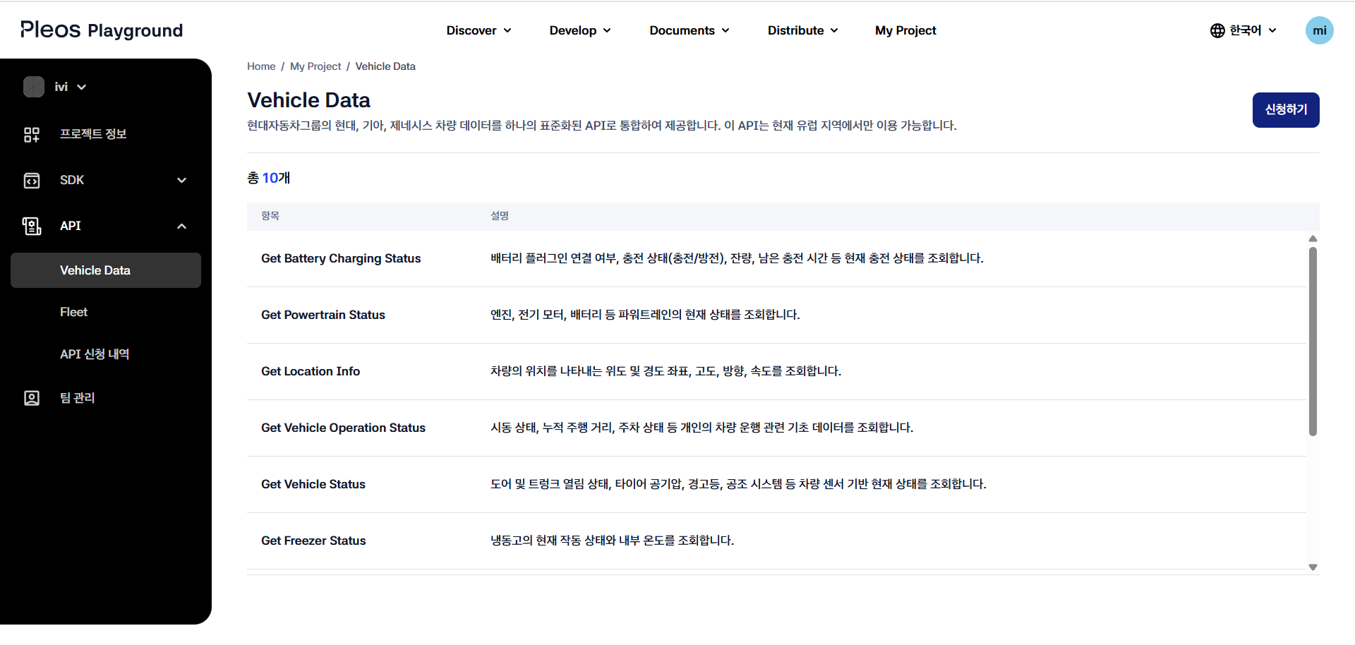 Vehicle Data API를 사용하려면 API 사용 신청을 선행해야 합니다.