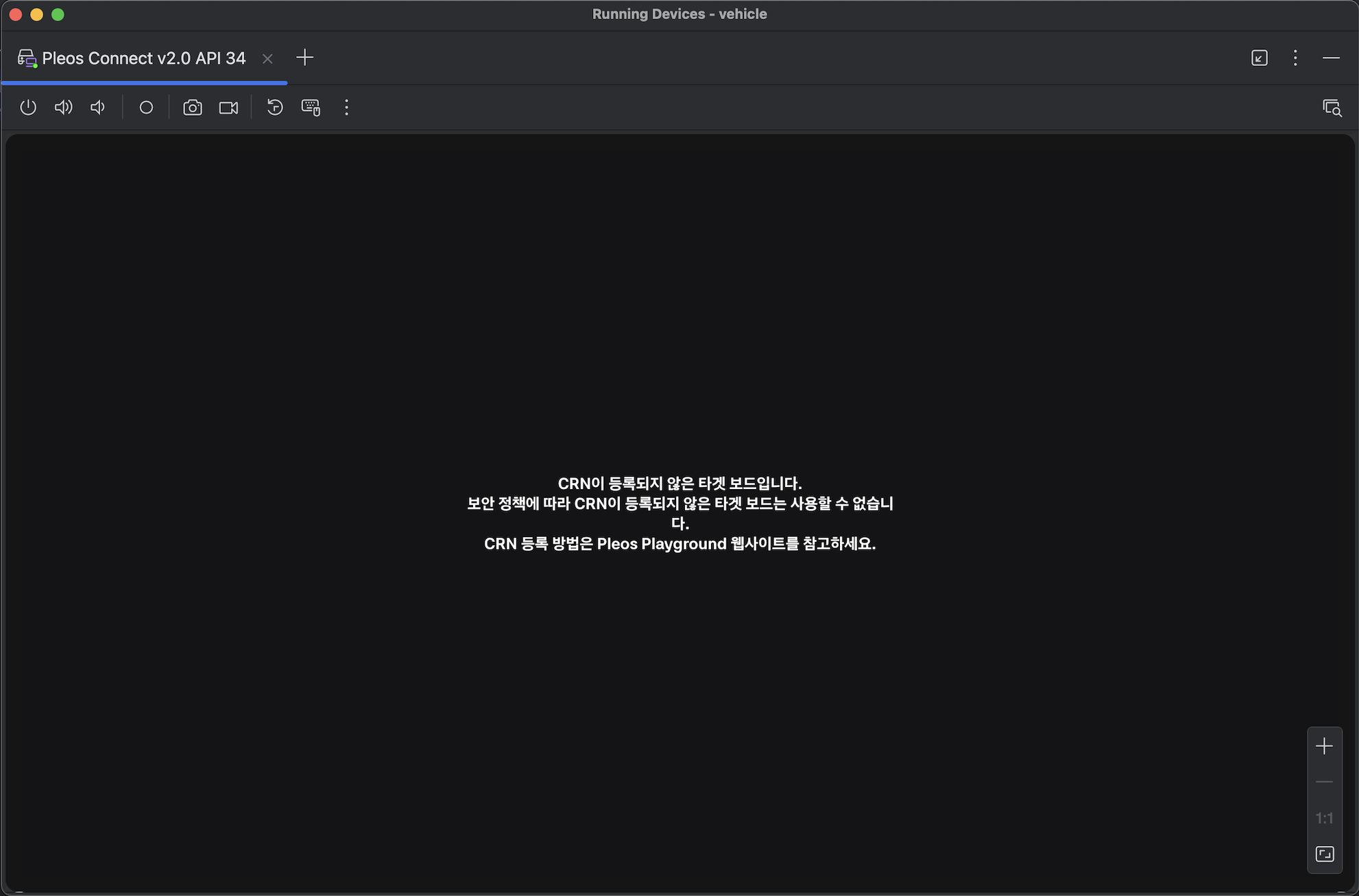 CRN이 등록되지 않은 타겟 보드입니다라는 화면이 나타납니다.