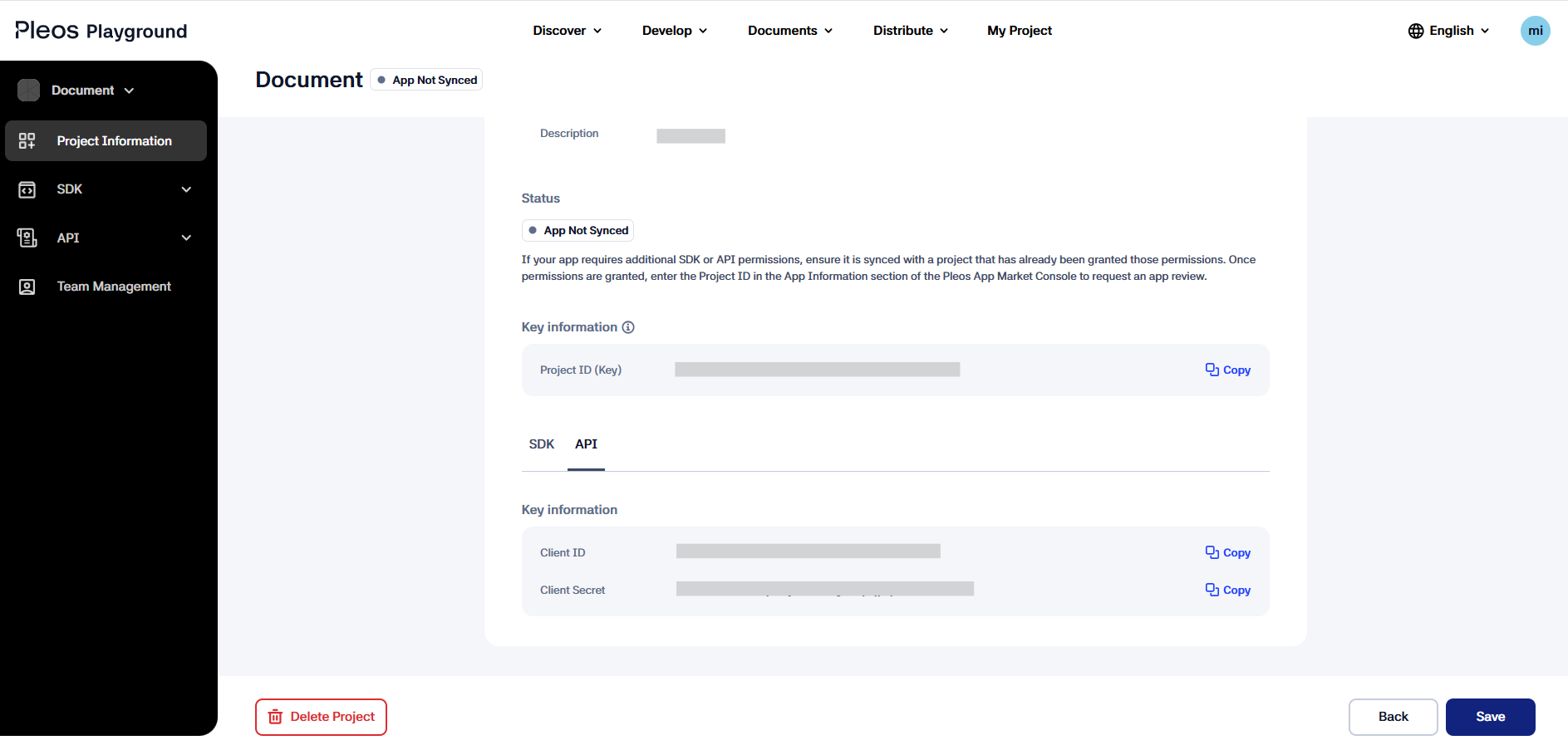 - In Pleos Playground > My Project, select the project that will use the Vehicle Data API.