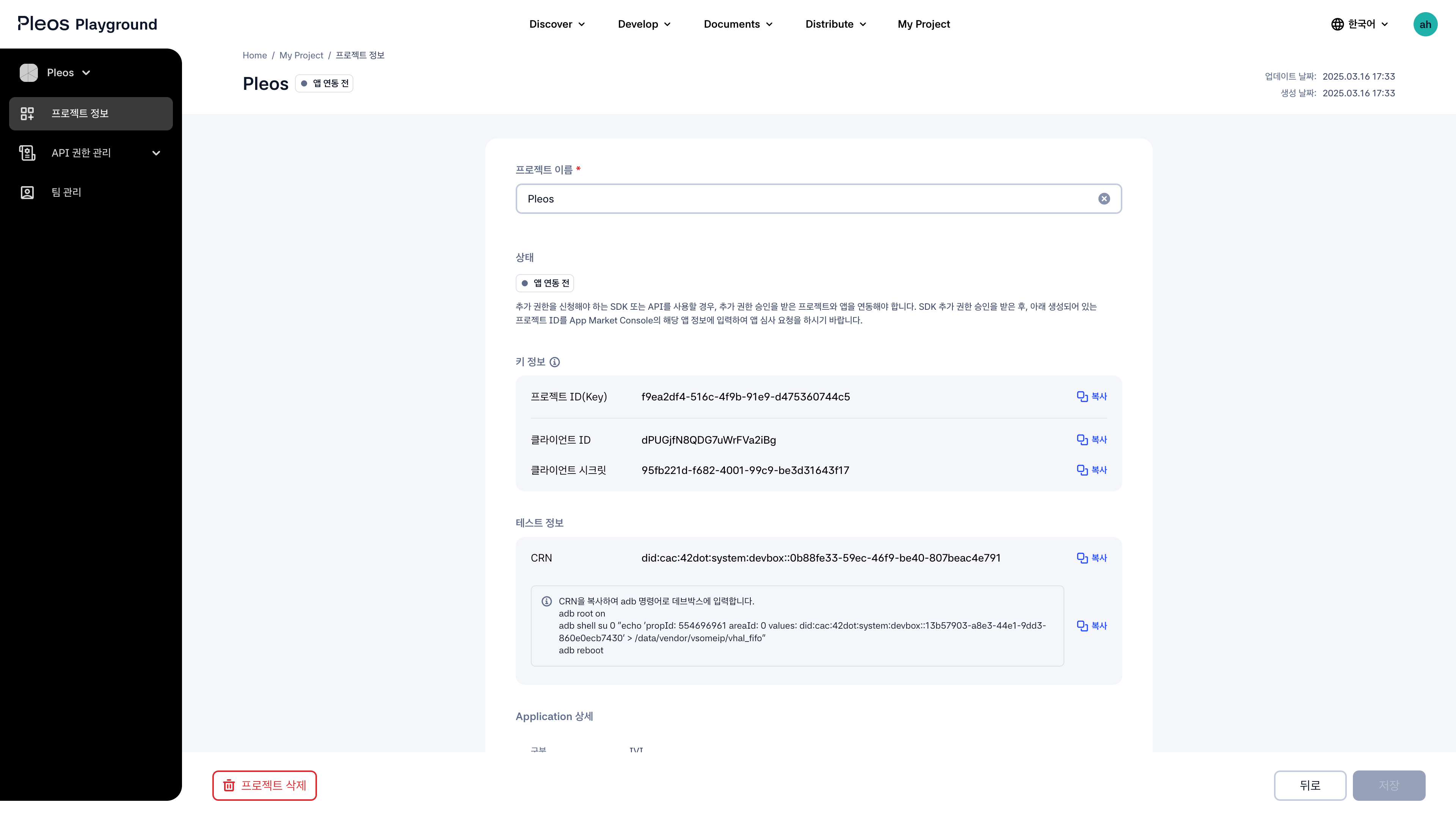 - Copy the CRN from My Project > Project Info > Test Info.