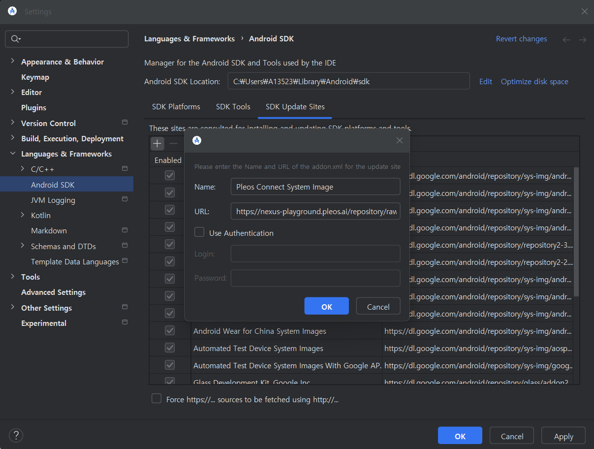 - Enter the following information to add the Pleos Connect SDK site.