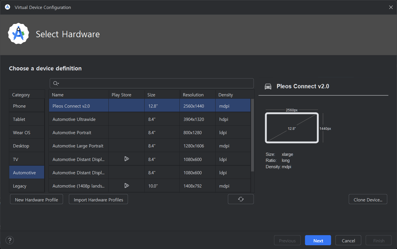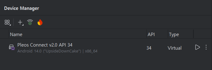 Create an Android Virtual Device (AVD) using the Pleos Connect Emulator.
